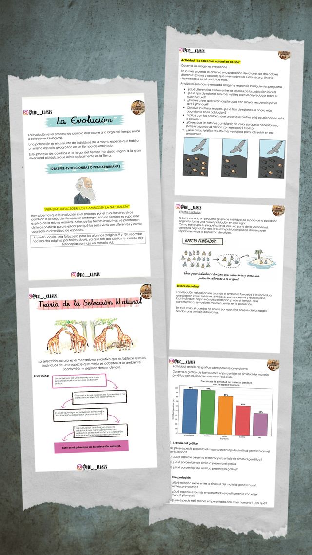 Una propuesta pensada para abordar la evolución de manera clara, gradual y completa, desde las primeras ideas sobre el origen de las especies hasta los mecanismos evolutivos más importantes.