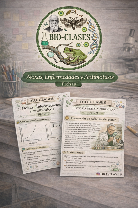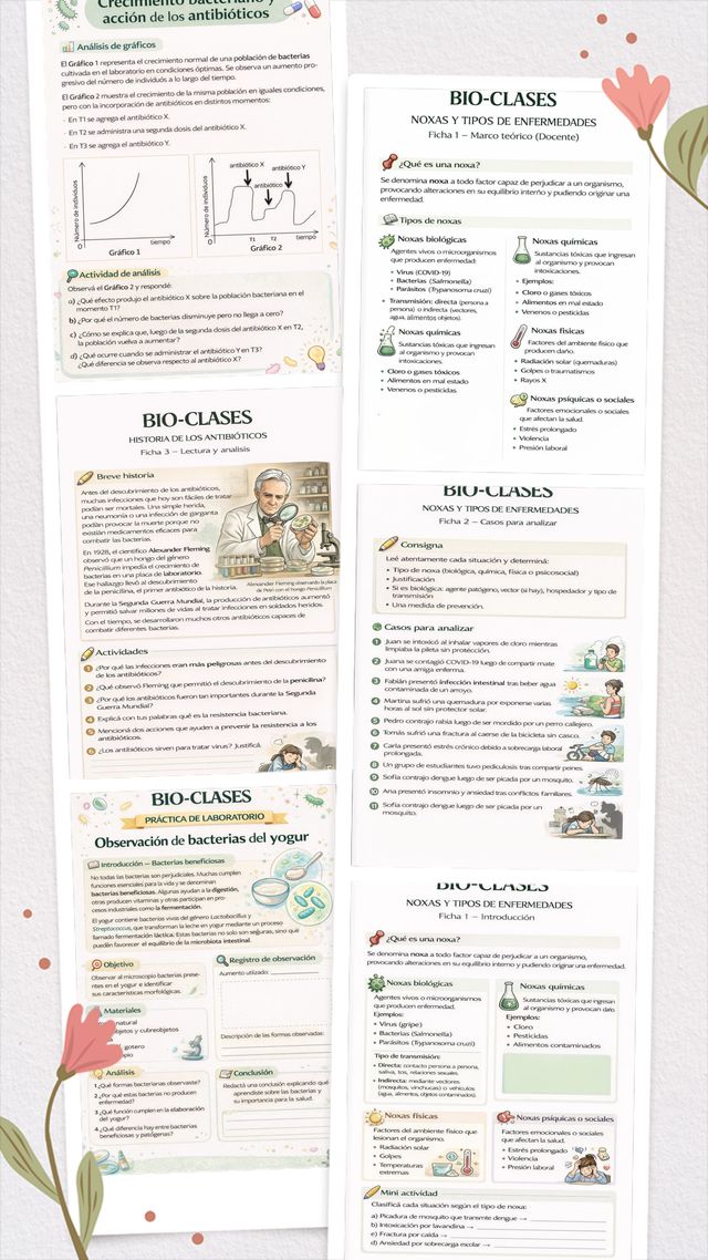 Incluye fichas, análisis de casos, gráficos, historia del descubrimiento de los antibióticos y práctica de laboratorio.